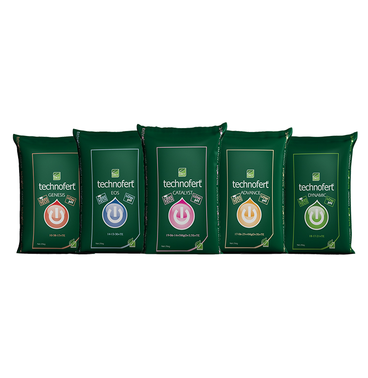 - Technofert, yetiştiriciliğin zor olduğu soğuk, ıslak, alkali şartlarda bitkilerin ek besin ihtiyaçlarını, geliştirilmiş formulasyonları ile karşılamaya yardımcı olur. İyi bir başlangıç, iyi bir gelişim, erken ve kaliteli ürün elde etmek için tasarlanan bir gübredir. Verim ve kaliteyi pozitif yönde teşvik eder. Kolay kullanımı ile zaman kazandırır, maliyeti düşürmeye yardımcı olur. Farklı 5 formulasyonu ile bitkilerin farklı dönemlerinde ihtiyacı olan bitki besin maddelerini, dengeli bir şekilde kullanıma sunar. Toprakta bulunan demir, mangan, bakır ve çinko gibi metaller çoğunlukla suda zor çözünür bileşikler halindedir. Ayarlanmış pH’ı sayesinde bu minerallerin bitkiler tarafından alımını kolaylaştırır. Technofert kristal yapıdadır ve aynı zamanda kuvvetli asidik özelliklere sahiptir. Technofert kullanılan programlarda ek asit kullanılmasına ve taban gübresi kullanılmasına gerek yoktur. Kristal yapıda ve akışkan olması nedeniyle sıvı asitlerle karşılaştırıldığında taşıması ve kullanılması kolaydır. Anti-clogging özellikleri sayesinde sulama sistemlerini temiz tutar, tıkanmayı önler, su ve gübrenin eşit dağılmasını sağlar.